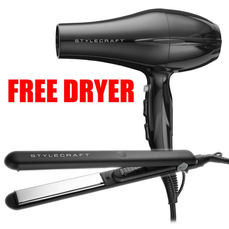 S|C Stay-Temp Flat Iron and receive a Stay-Temp Ionic Turbo Dryer FREE!