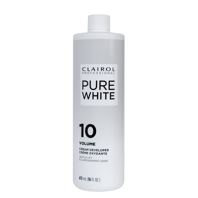 Clairol Professional pure white crème developer contains protective conditioners and emollients and is stabilized for 3 years. It is designed for use with permanent colors, and also perfect for use with all powder and liquid lighteners. Its creamy consistency makes it ideal for bowl-and-brush or bottle application.