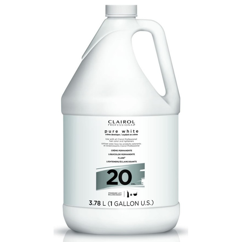 Clairol Professional pure white crème developer contains protective conditioners and emollients and is stabilized for 3 years. It is designed for use with permanent colors, and also perfect for use with all powder and liquid lighteners. Its creamy consistency makes it ideal for bowl-and-brush or bottle application.